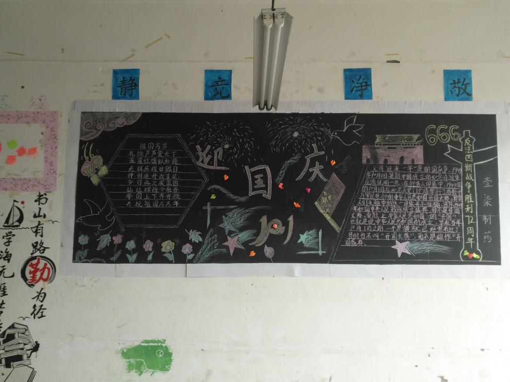 为了创设良好的班级文化环境,营造出浓厚的班级文化氛围,让教室的每一个角落都体现出独具匠心和学习的文化气息,在祖国母亲六十八华诞来临之际。中专部展开“庆国庆·创文明”黑板报评比活动。