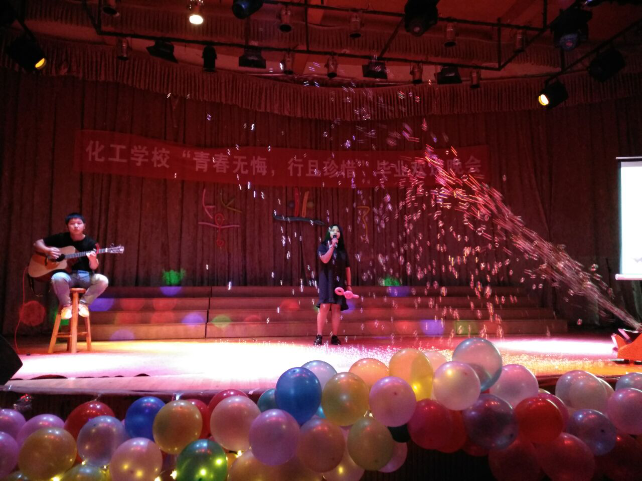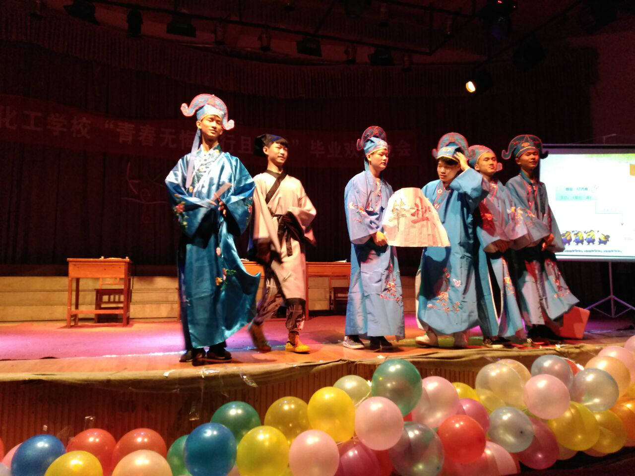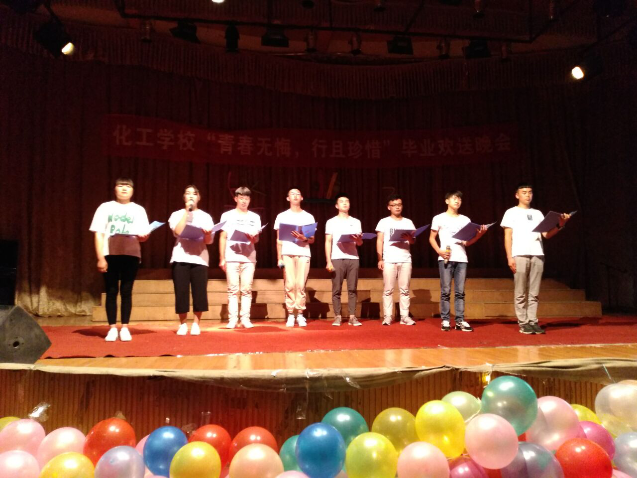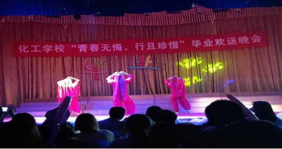 “驿路漫漫欢人聚,风华正茂将别离”又是一年花开之际,又是一年毕业之时。一样的季节与感伤,不一样的回忆与留恋。晚会经过近一月的精心策划和紧张筹备,2018年6月26日晚上七点钟,化工学校“青春无悔,行且珍惜”毕业欢送晚会在道德讲堂拉开了帷幕。学院党委委员、副院长宋奕老师,化工学校常务副校长刘春老师、化工学校副校长严泓老师、团总支书记黄宗正老师以及化工学校各辅导员出席了本次晚会。广大同学对于观看表演也报以极高的热情。